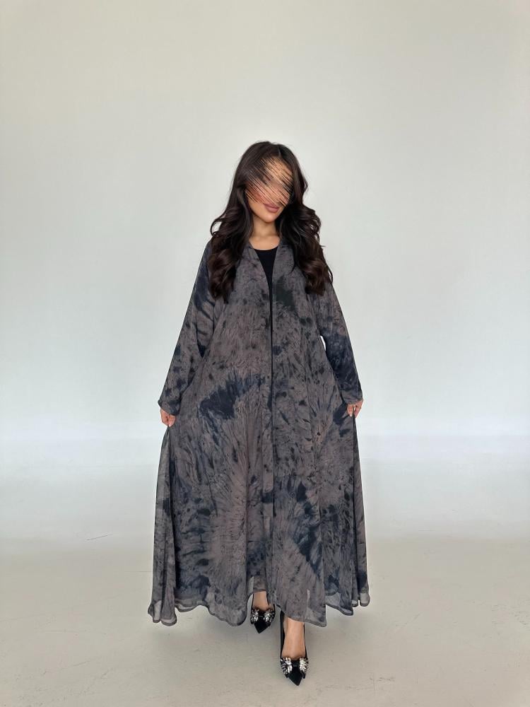 عباية شيفون مشجر تتحرك معكِ كأنها تحفة فنية متحركة، فهي قطعة مصممة للمرأة التي تبحث عن التعبير عن ذاتها بأسلوب مختلف؛ حيث تتلاقى فيها حركة الشيفون الخفيف مع جمال النقشات الضبابية التي تشبه السحب.